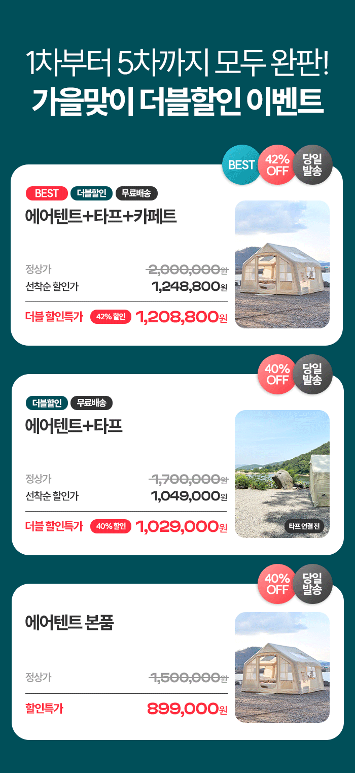 6차입고완료) 19kg 초경량 에어텐트 마운틴웨일 가벼운 폴리 에어텐트 3분 설치 복제